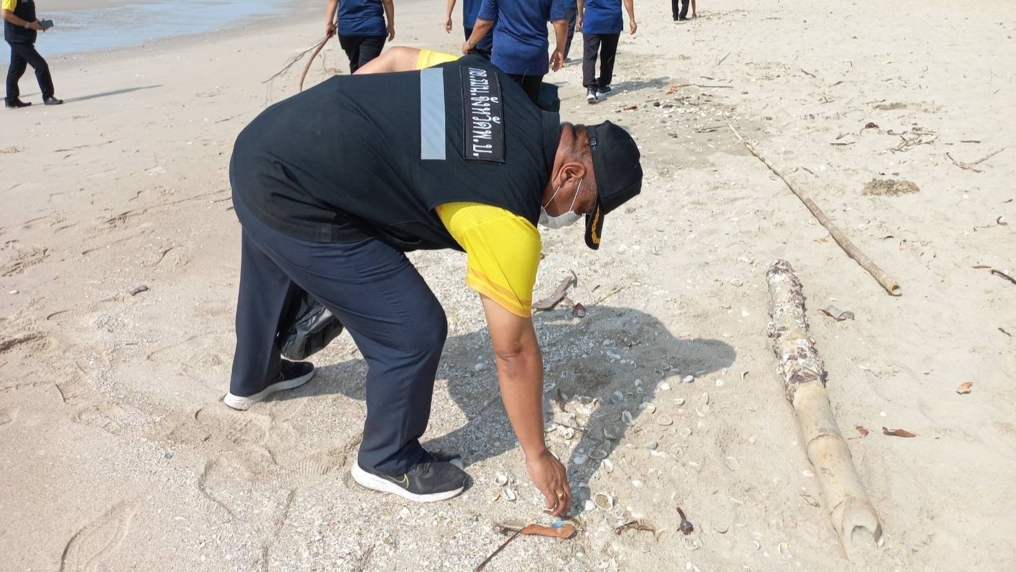 พ.อ.กรกานต์ นาเวชวนิชกุลรอง ผอ.รมน.จังหวัดเพชรบุรี มอบหมายให้ พ.อ.วินัย เฟื่องฟู เจ้าหน้าที่ กอ.รมน. จังหวัดเพชรบุรี ร่วมกับ จนท.สถานพักฟื้น และพักผ่อนกองทัพบกหาดเจ้าสำราญ ช่วยเก็บขยะตามแนวชายหาด