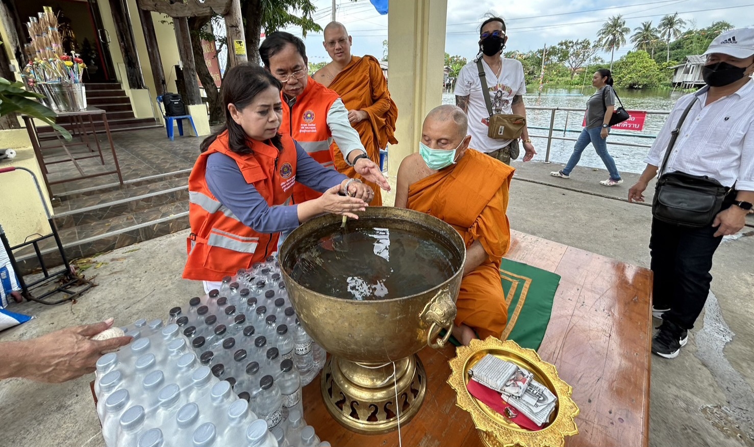 โดยมีนางสาวปริศนา ลักษณะกุลบุตร นายก อบต.บางขุนกอง เป็นประธาน จุดเทียนชัยน้ำมนต์ และ ถวายสายสิญจน์ ทำพิธี